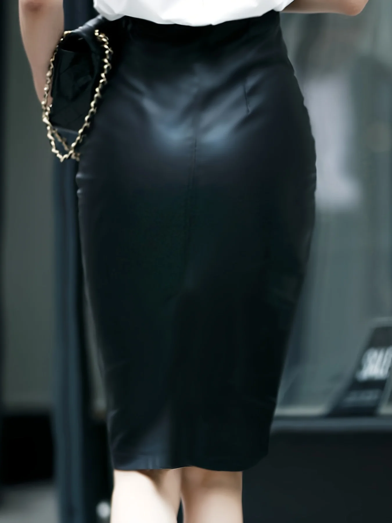 Descubre la fusión perfecta entre sensualidad y poder con nuestra falda tubo de cuero sintético.